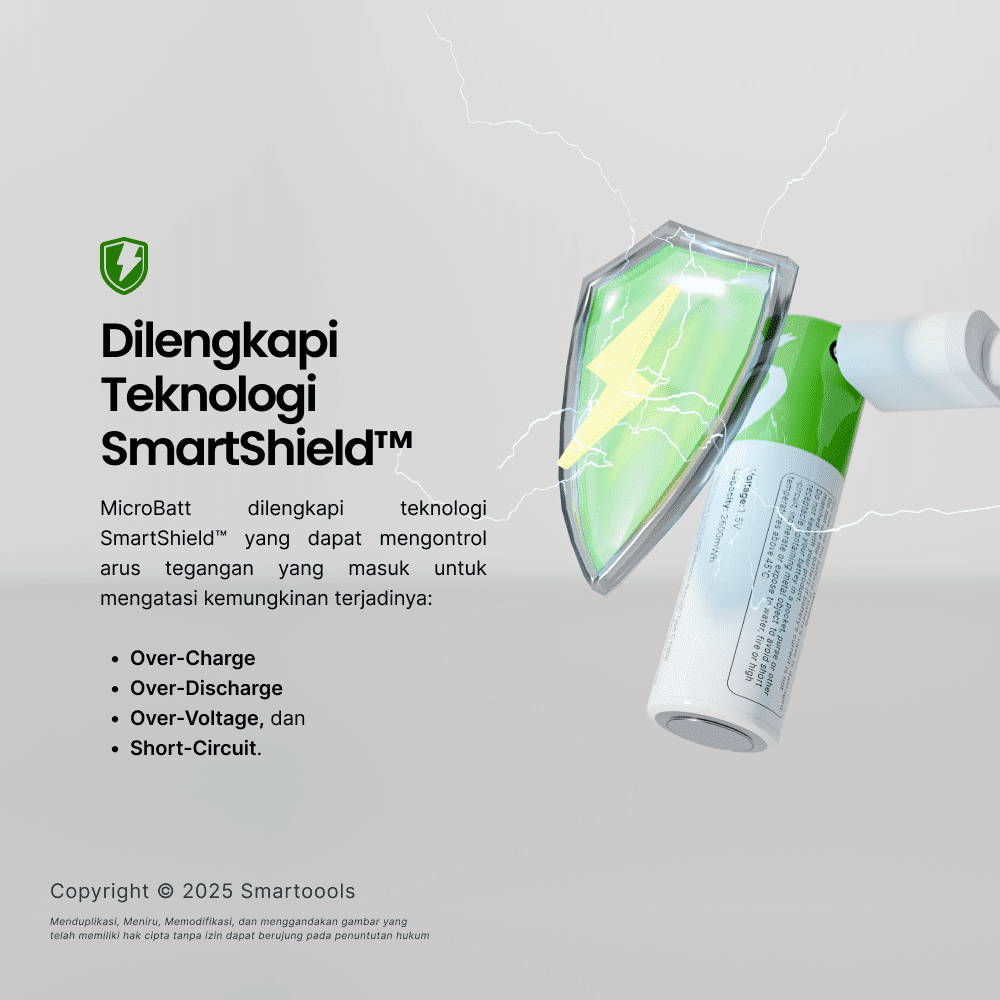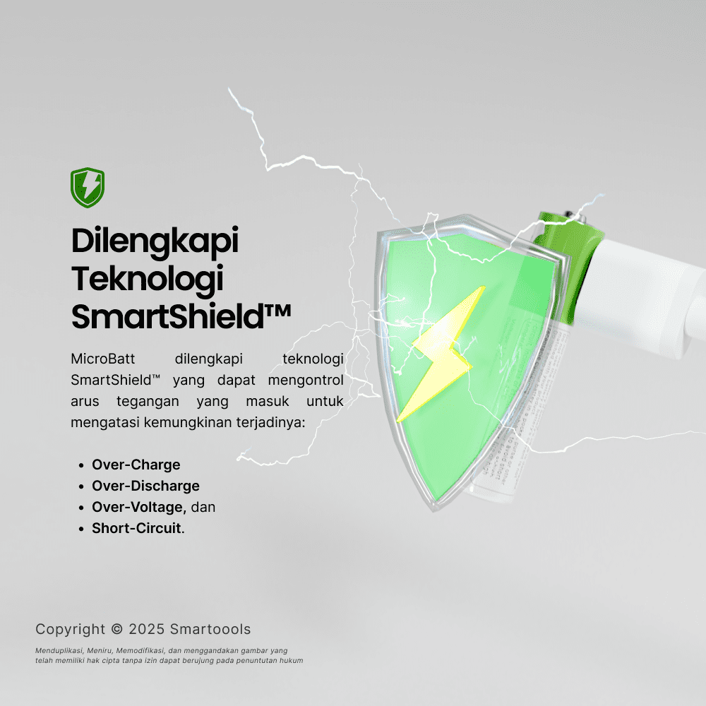 - Keamanan Terjamin: SmartShield™ melindungi baterai dari risiko korsleting, over-charge, over-discharge, dan over-voltage.
